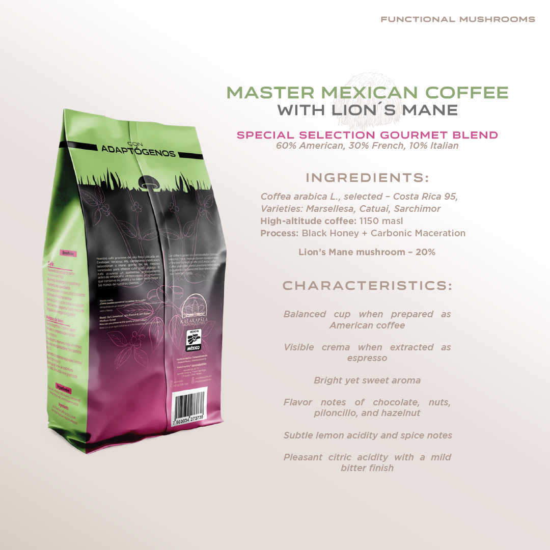 PHI FUNGI Lion's Mane coffee is made in Mexico under high-quality processes, combining the taste of great coffee to achieve maximum concentration of the mushroom's functional compounds.