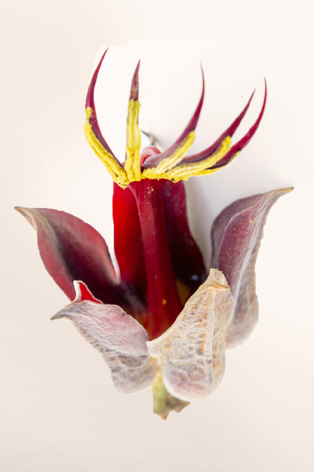 It has a deep, dark chocolate color characteristic of high-concentration dark cocoa, with an intense toasted cocoa aroma and subtle herbal notes from its botanical blend.