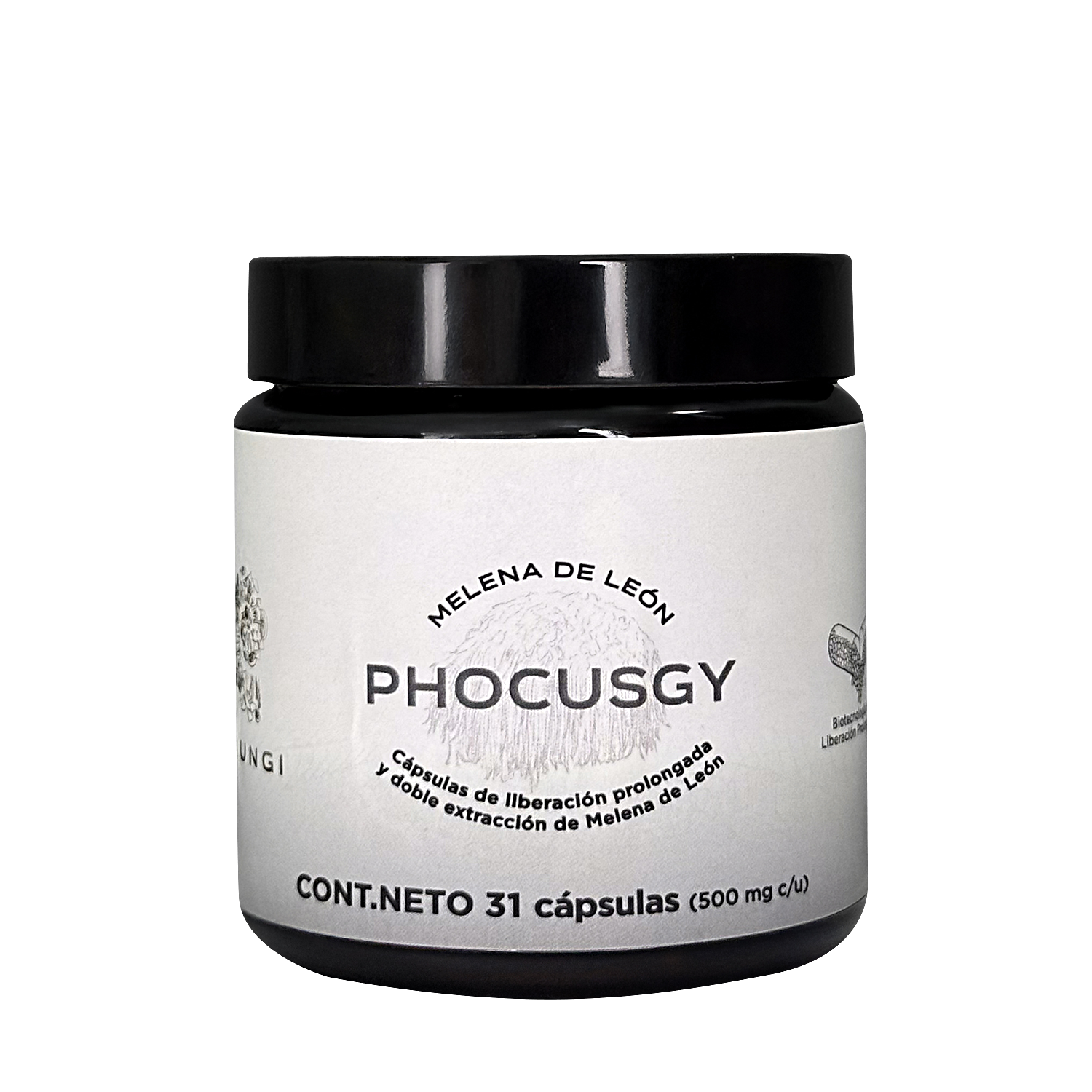 Each capsule contains 500 mg of our mushroom formulation, carefully pelletized for a better consumption experience.
