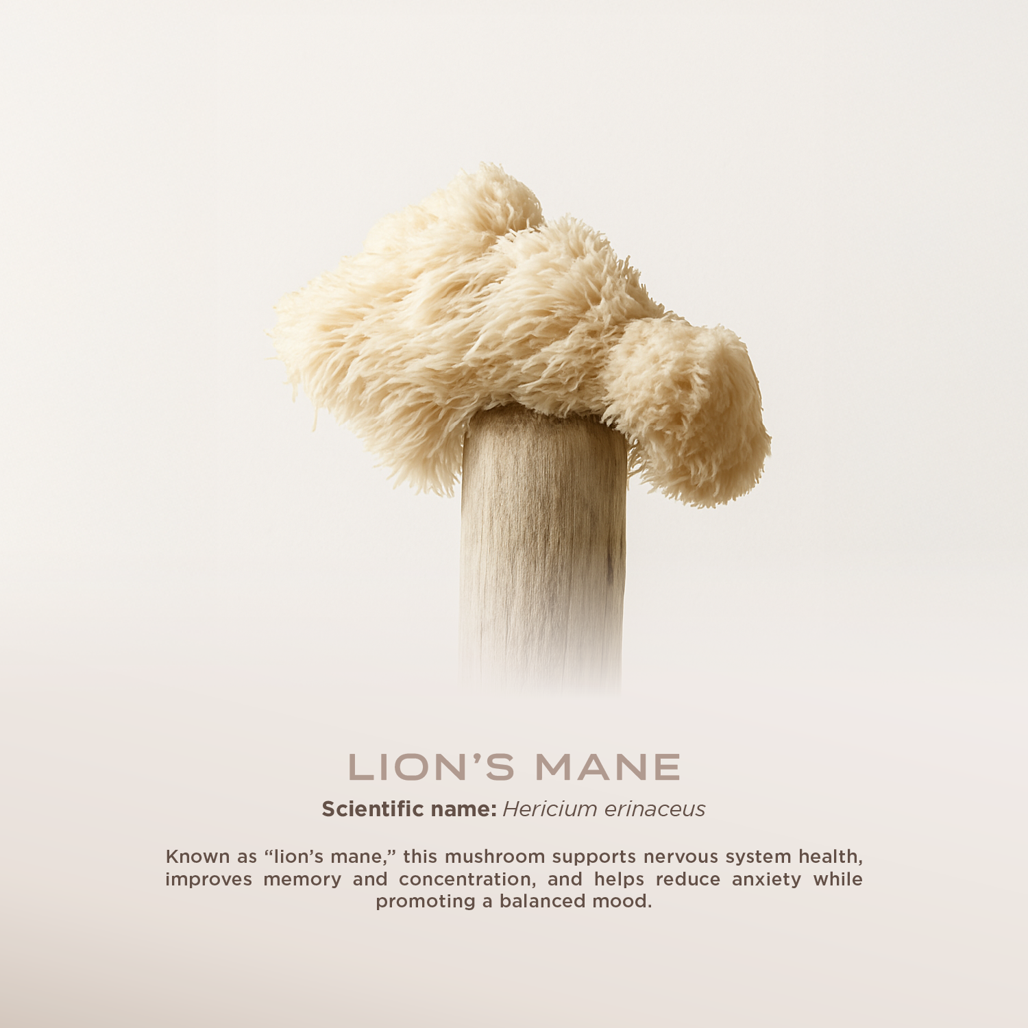 It is also known as the hedgehog mushroom or pom-pom blanc. Its fruiting body resembles a majestic lion’s mane, which is the origin of its popular name. It has a positive effect on the nervous system, improving cognitive functions such as concentration and memory. Its neuroprotective effects and stimulation of nerve growth factor support the management of neurodegenerative diseases. It also has anxiolytic properties, which may help reduce symptoms of anxiety and improve mood.