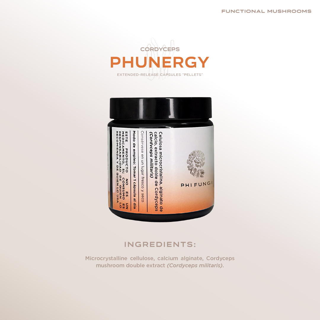 PHI FUNGI pellets are concentrated mushroom extract granules, produced under high-quality standards in Mexico City. They are obtained through a dual-extraction process and advanced pelletization technology, ensuring a stable, effective, easy-to-take product—with carefully controlled ingredients at every production stage.