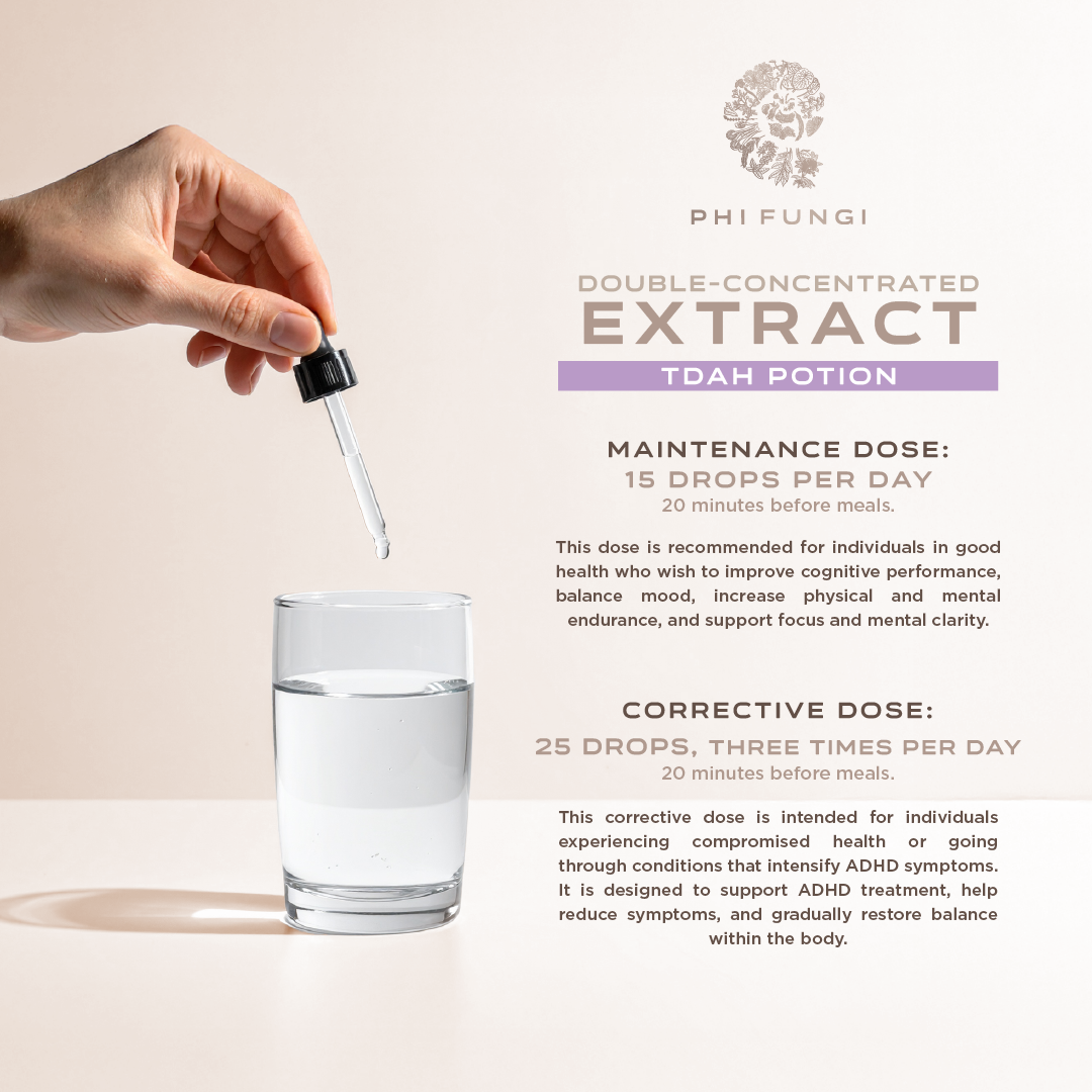 Mix your PHI FUNGI extract into your favorite drink gradually and consistently so your body can adapt to the extract’s intense profile (herbal taste). This also helps you find the frequency that best fits your routine and enjoy its benefits in an easy, consistent way.